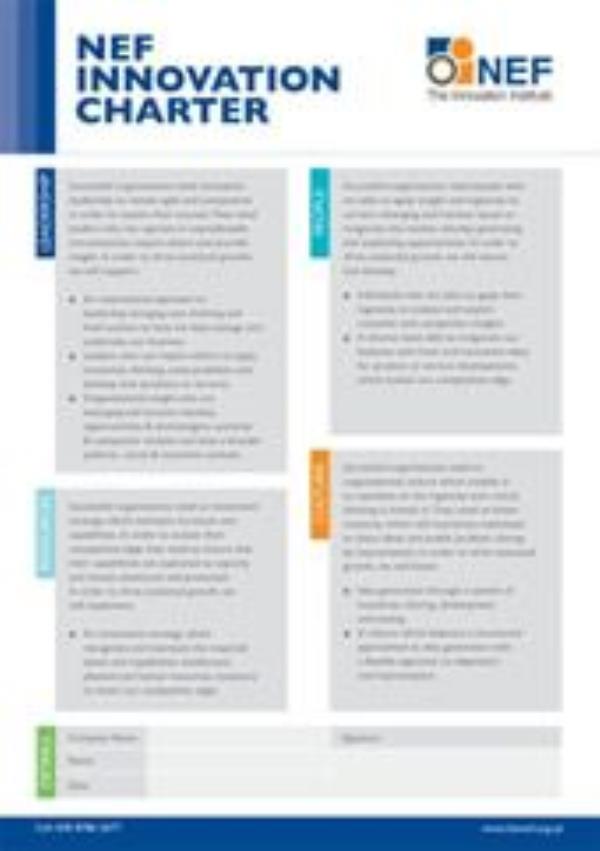 If you would like to find out more about how your organisation can sign the Innovation Charter, please contact Dr Elizabeth Brookfield at info@thenef.org.uk